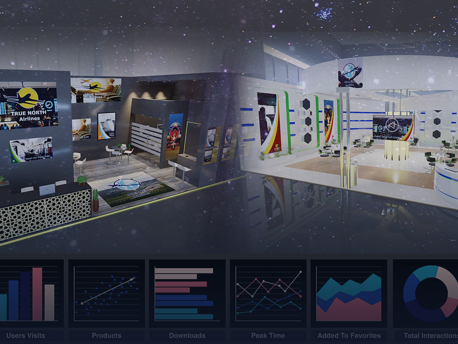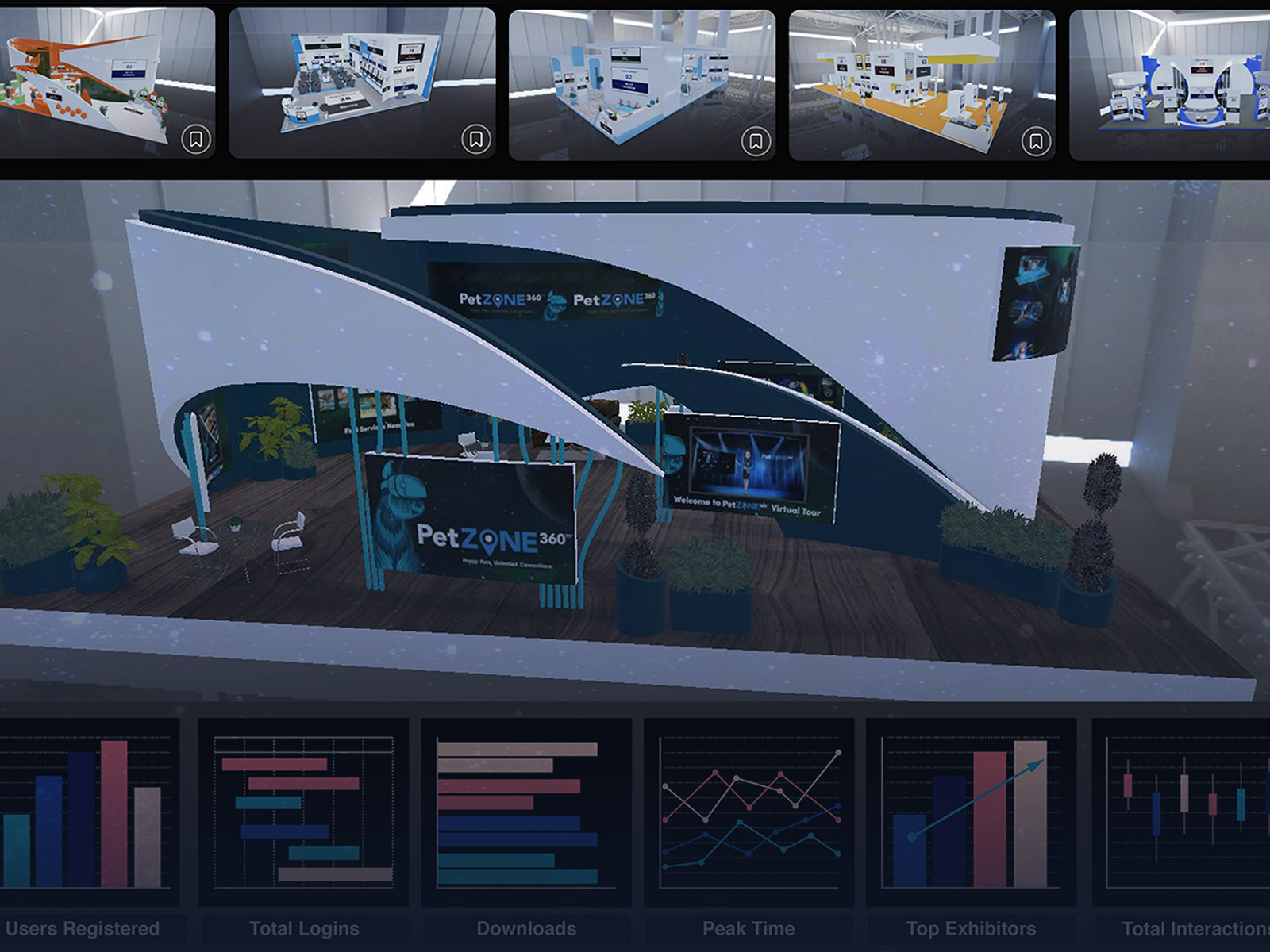 Give your exhibitors individualized dashboards for them to see user views & interactions. Plus, get a collective dashboard for your whole virtual expo. Easily export your data to CSV files.
